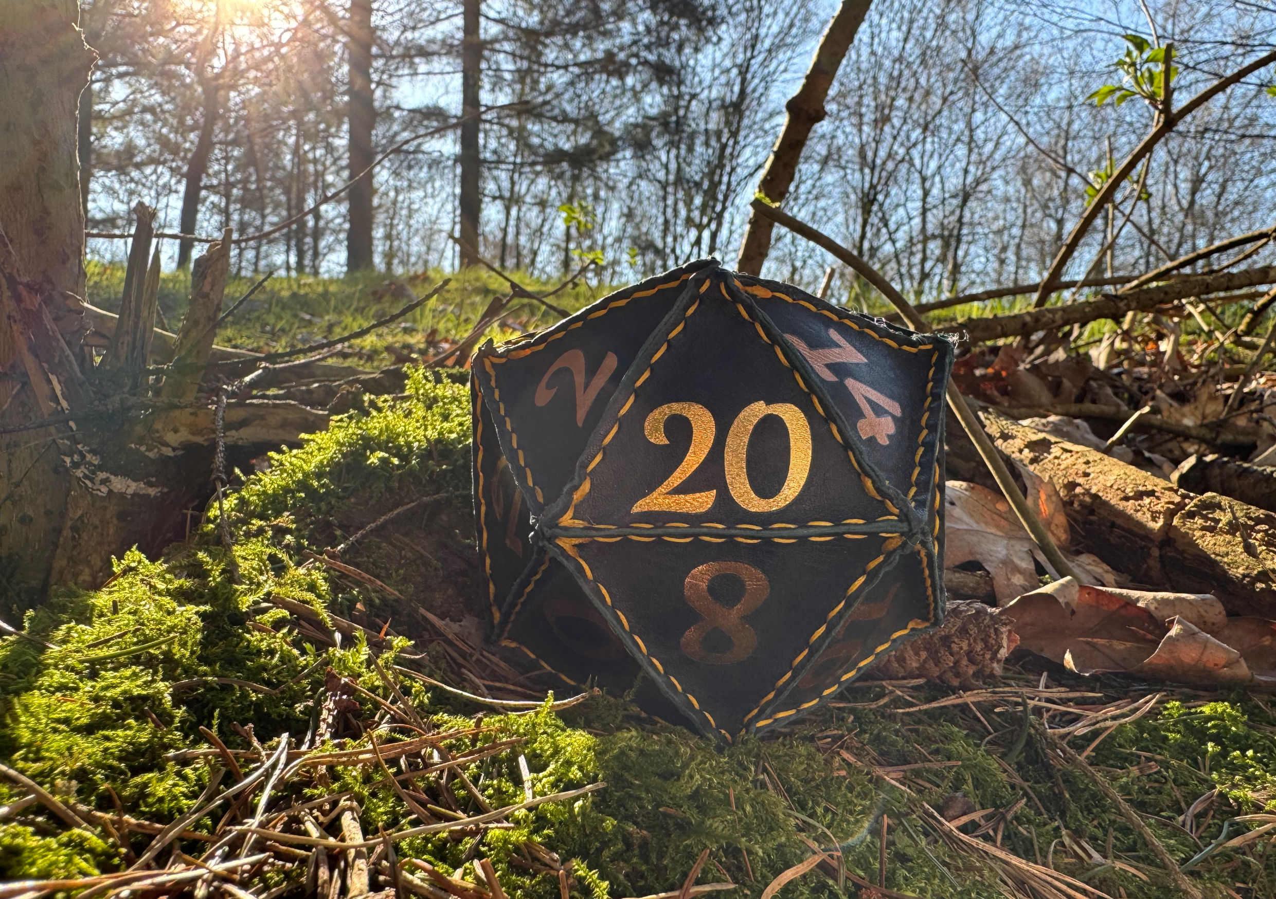 For those really important role — a handcrafted jumbo sized lather D20 designed for DM's, advanced adventurers, collectors, and the ultimate dice goblin.
